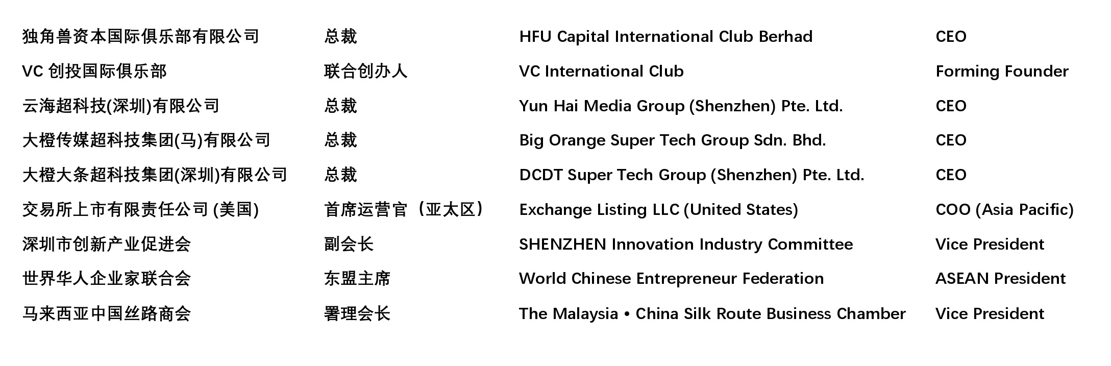 • 2024:与美国的交易所上市有限责任公司创始人兼首席执行官彼得·戈尔茨坦签署协议成为东盟代表,以协助有潜能的企业迈向美国纳斯达克上市之路。